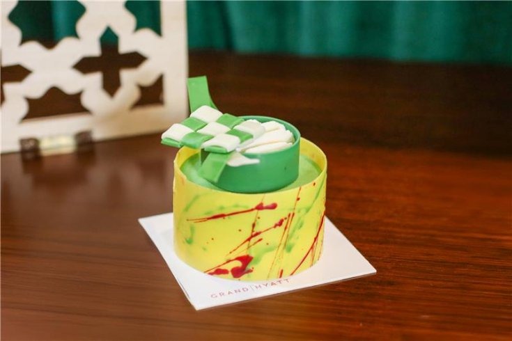 Pandan chiffon, coconut cheese mousse, mango curd, palm sugar coconut filling